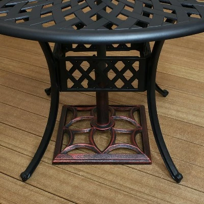 Keep the patio umbrella in place while adding a decorative touch to any outdoor living space with this patio umbrella base. Made of durable cast iron, this base can withstand Mother Nature and won’t blow away in windy conditions. The heavier property of this stand also ensures that the umbrella won’t tip over. This stand can accommodate umbrellas with a pole diameter between 1.25 to 2 inches diameter using the thumb screw. This patio umbrella base features an attractive curved design that works well with a variety of outdoor decor styles.