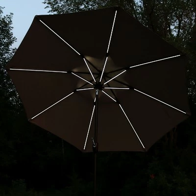 - Solar LED light bars are located on each umbrella rib