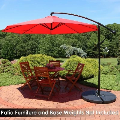 Provide style and shade for your outdoor living space with this offset cantilever patio umbrella from Sunnydaze Decor. Constructed of waterproof polyester, the umbrella canopy is designed to be durable to hold up to the elements. The steel base and pole provide a strong frame for this umbrella. It is easy to set up and adjust with the cantilever and crank. This umbrella will be the perfect addition to the patio, deck, backyard and anywhere else you want to stay cool while outdoors. Please note, a heavy base is necessary to keep this umbrella securely in place (not included, must be purchased separately).