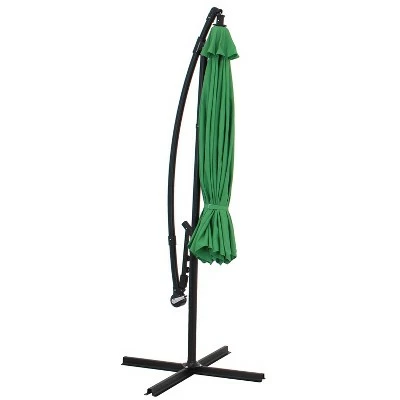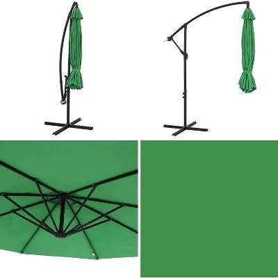 Sunnydaze Decor Sunnydaze Outdoor Steel Cantilever Offset Patio Umbrella with Air Vent, Crank, and Base – 9′ – Emerald