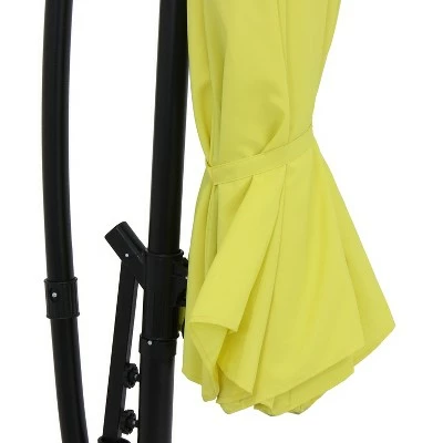 Sunnydaze Decor Sunnydaze Outdoor Steel Cantilever Offset Patio Umbrella with Air Vent, Crank, and Base – 9′ – Sunshine