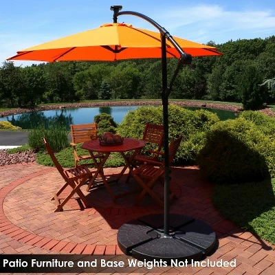 Enjoy shade during the day and gentle illumination in the evening with this Outdoor Cantilever Umbrella with Solar LED Lights from Sunnydaze Decor. Featuring a waterproof polyester umbrella canopy, this outdoor umbrella is designed to be strong enough to hold up against the elements. The umbrella is held together by a durable steel base and pole that provide a sturdy frame. This outdoor patio accessory is easy to set up and adjust with the cantilever and crank. Please note, a heavy base is necessary to place on the crossbase to keep this umbrella securely in place (not included, must be purchased separately).
