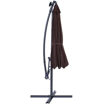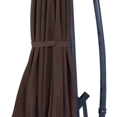This outdoor offset patio umbrella with cantilever and crank will add the perfect shaded space to any patio or yard. The umbrella is perfect for hanging over outdoor dining tables, hammocks, deep seating patio furniture set and more. Each umbrella has a durable steel pole and 8 steel ribs. The 2 twist knobs on the umbrella pole may be loosened allowing the center of the umbrella to rotate so the umbrella base does not have to be moved once it has been set in its desired location. The umbrella is made from 100% polyester for extra durability. The base can be easily weighed down with four 30-pound paving stones or concrete weights. Heavy-duty water/sand umbrella bases may also be purchased separately.